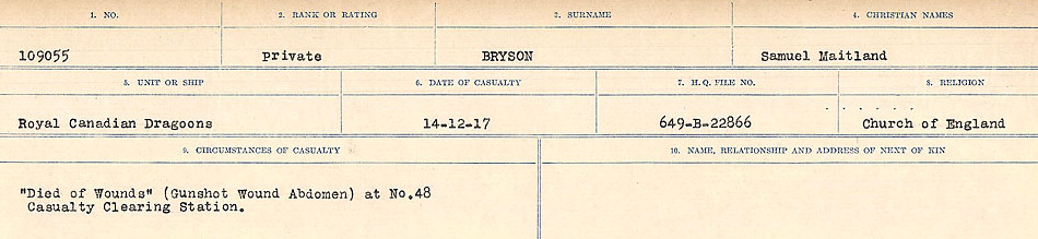 Galerie numérique de Soldat Samuel Maitland Bryson