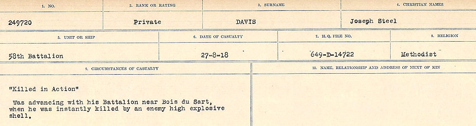 Vis-en-Artois et Haucourt sont des villages du département du Pas-de-Calais, situés sur la route qui s'étend d'Arras à Cambrai. Le cimetière britannique de Vis-en-Artois (Haucourt) se trouve du côté nord de la route principale entre les deux villages.