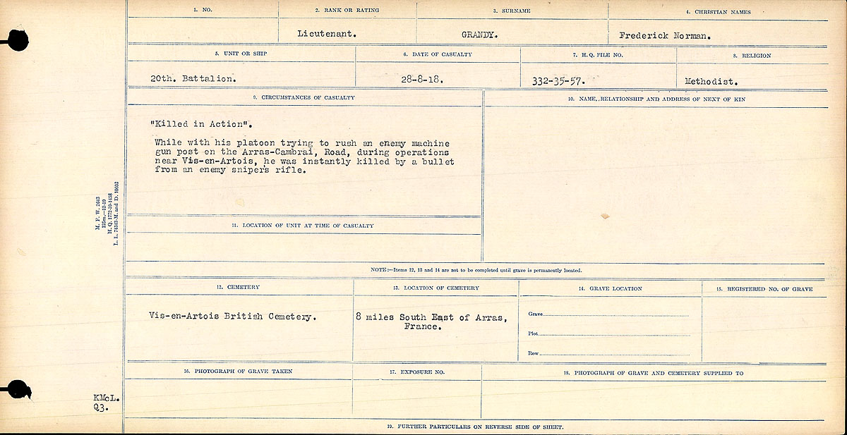 Galerie numérique de Lieutenant Frederick Norman Grandy