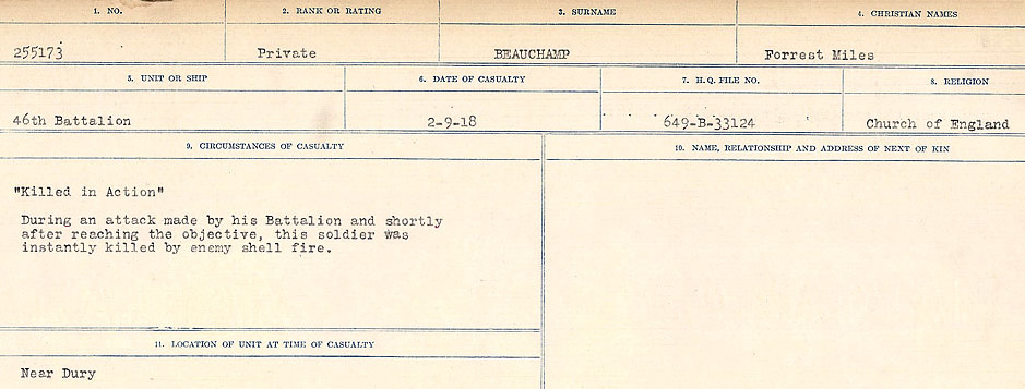 Galerie numérique de Soldat Forrest Miles Beauchamp
