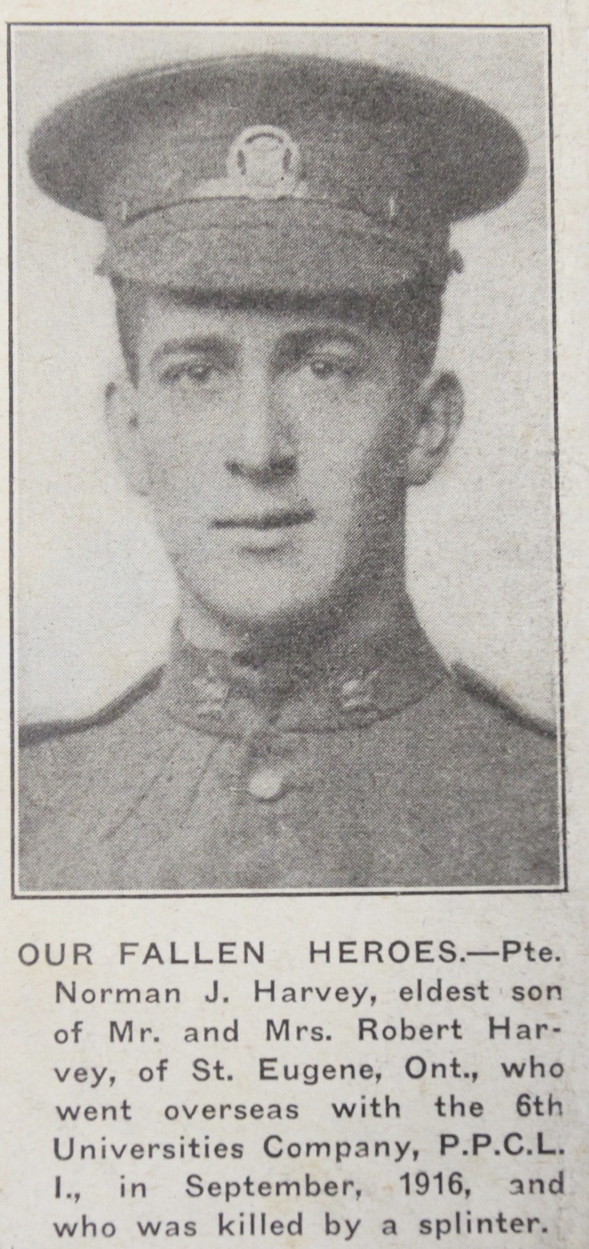 Fils de Robert et Alice Harvey, de St. Eugene, Prescott Co., Ontario.