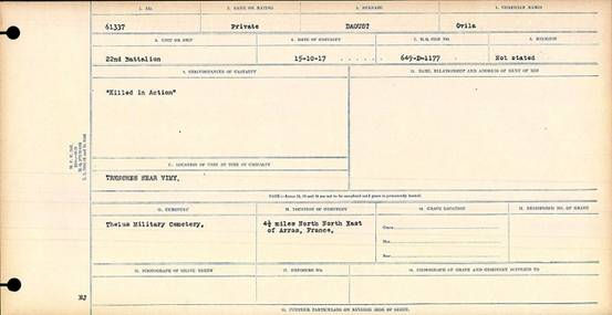 Galerie numérique de Soldat Ovila Daoust (D’Aoust)
