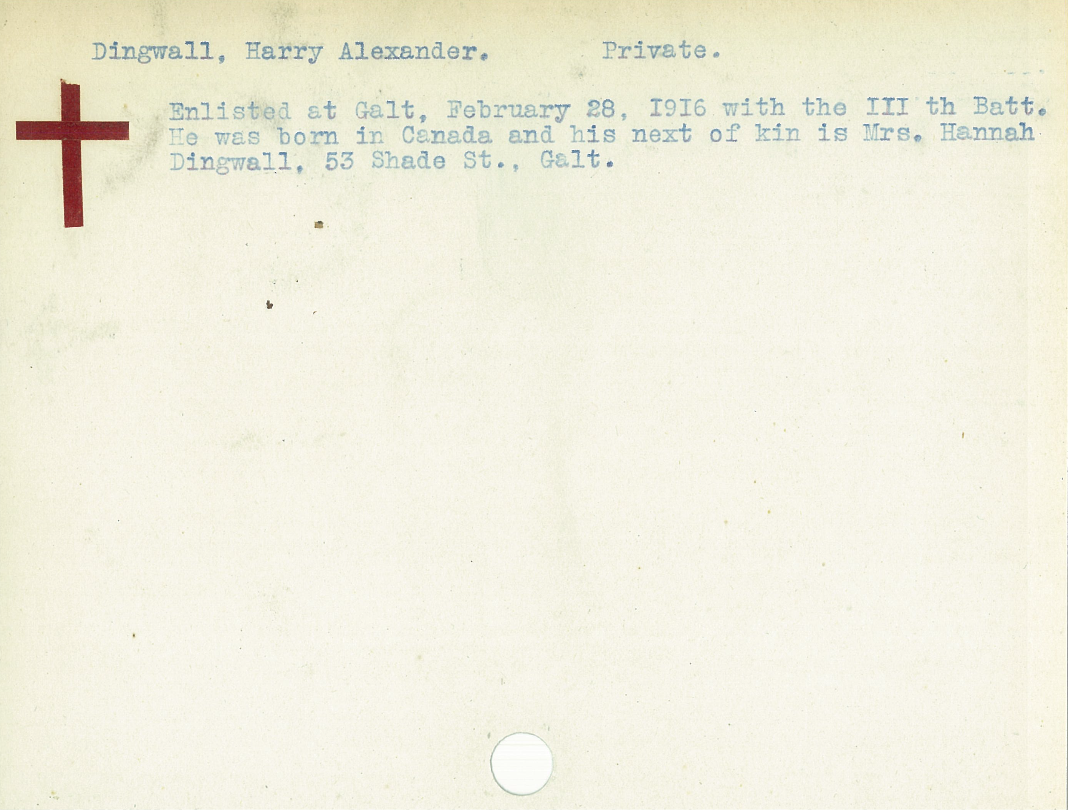 Galerie numérique de Soldat Harry Alexander Dingwall