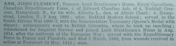 Fils de Edward Claudius Ash et Alberta L. Ash, de 4, Rudall Crescent, Hampstead, London.