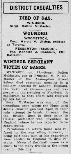 Fils de Matthew P. et Matilda McMaster, de Windsor, Ontario.