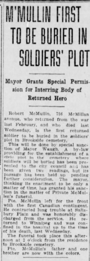 Fils de Hugh et Mary McMullin, de Winnipeg, Man.