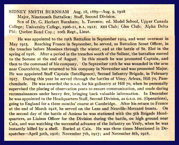 Fils de Dr. George Herbert Burnham et Frances Sarah Burnham, de Toronto (Ontario).