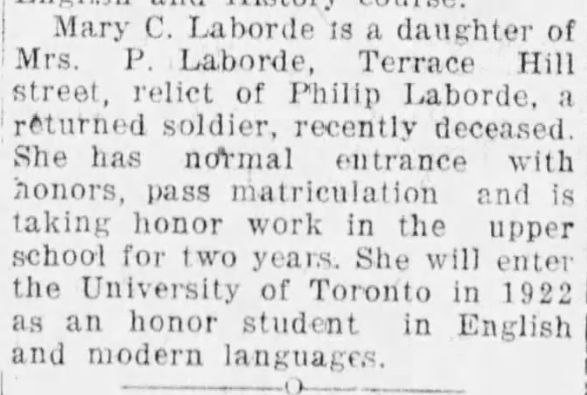 Fils d'Edward et Lucy Laborde de St. Vincent's, Époux de Mary North Laborde et père de Lucy Edith, Margaret Faith et Consuelo Mary de Brantford, Ontario.