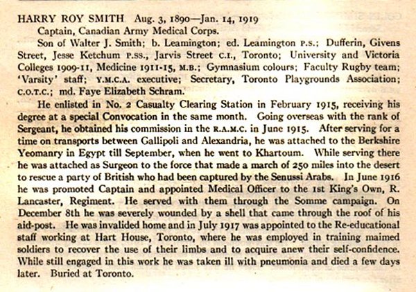 Fils de Walter J. et Isabella M. Smith, de 48, Yorkeville Avenue, Toronto, Ont.; époux de Faye Elizabeth Smith, de 10, Gibson St., Toronto.