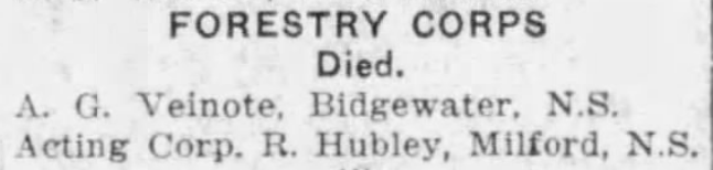 Fils de Freeman Cornelius et Mary Robina Veinote, de Bridgewater, Lunenburg, Nouvelle-Écosse.