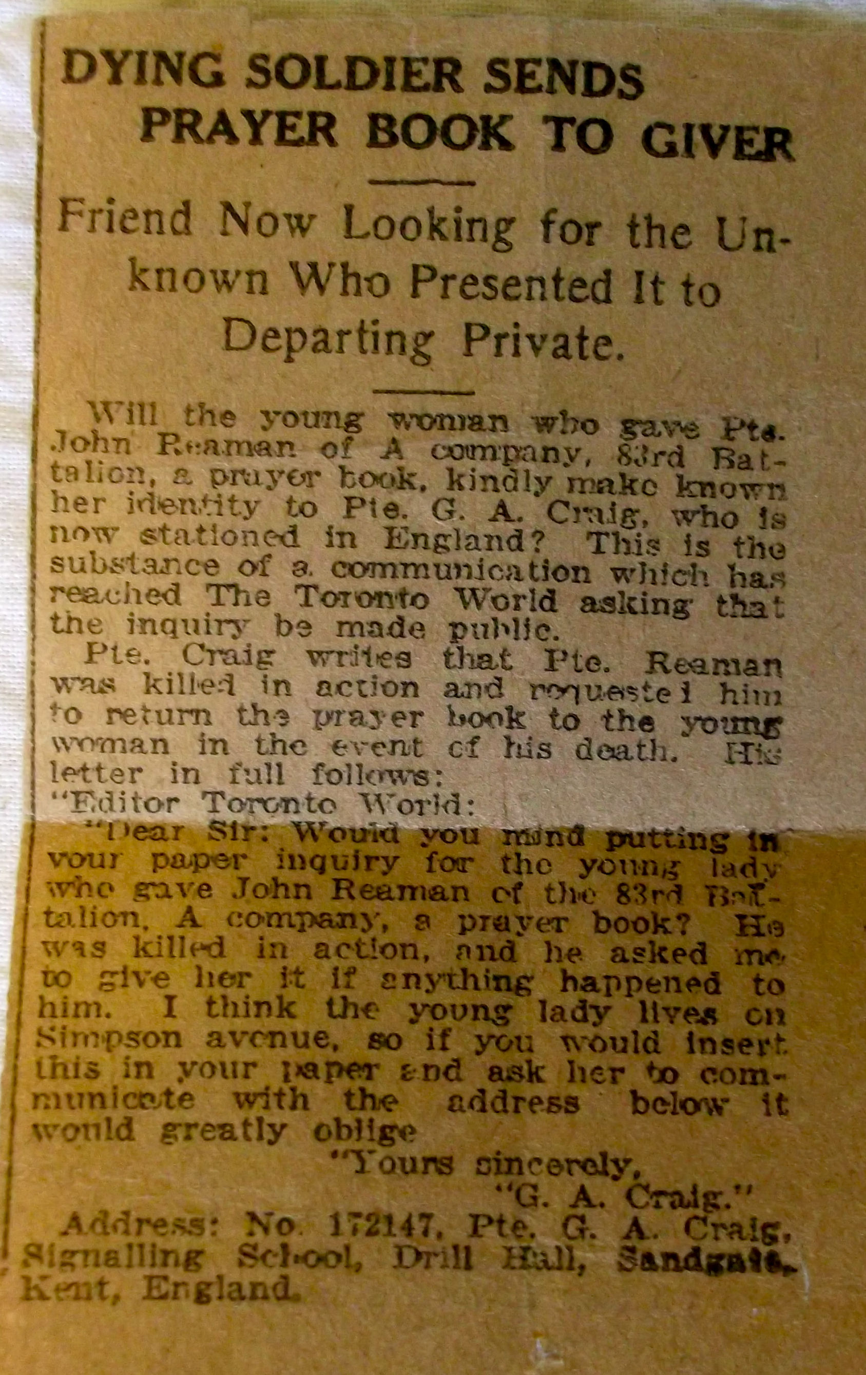 Galerie numérique de Soldat John Allan Reaman