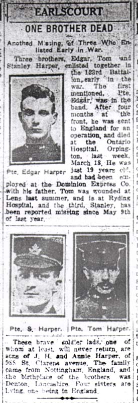 Frère du Soldat Stanley William Harper, décédé au service du Canadian Infantry (Central Ontario Regiment)