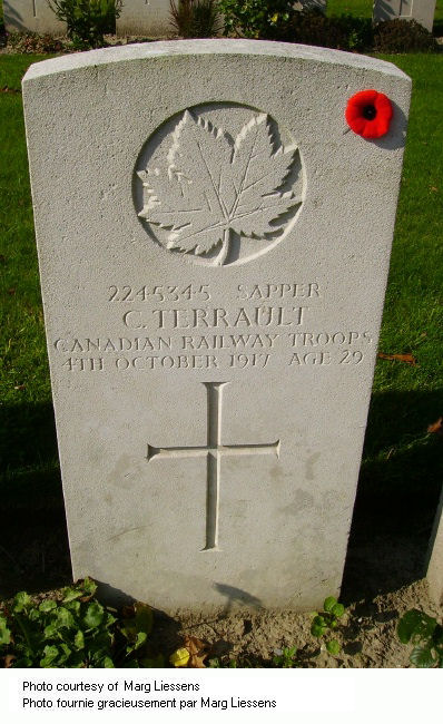 Fils de Ludgere Terrault et Mary Cadarette, son épouse, de Three Rivers, Québec.