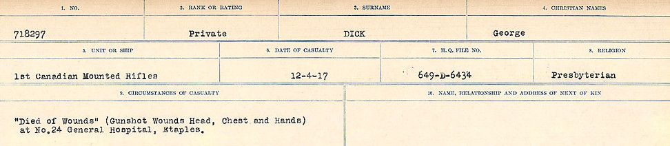 1<sup>st</sup> Canadian Mounted Rifles (Saskatchewan Regt.)