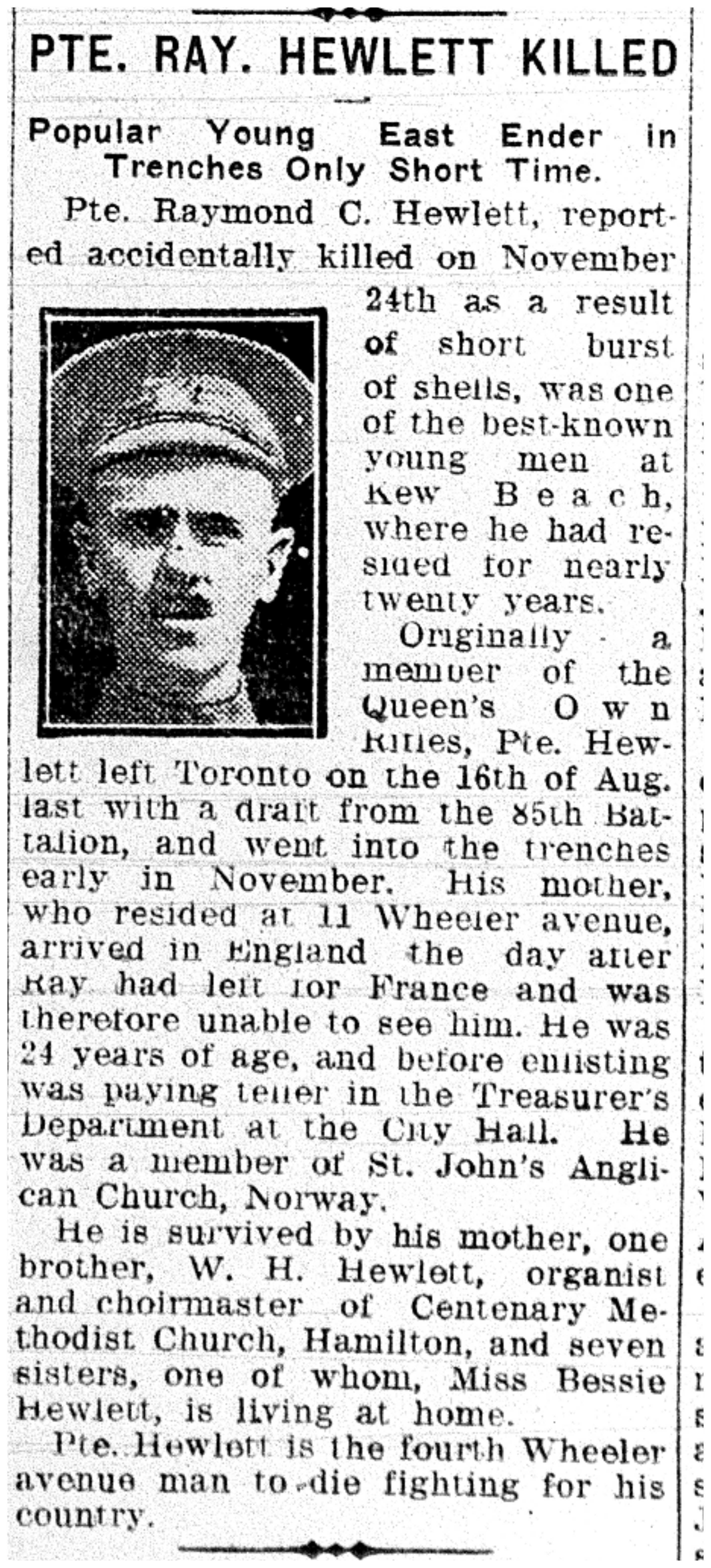 Fils de William Henry et Ellen Hewlett, de Toronto. Membre du Queen's Own Rifles (Toronto) avant de s'enrôler.