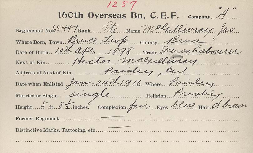 Fils de Hector et Elizabeth Jane McGillivray, de Bruce, Ontario.