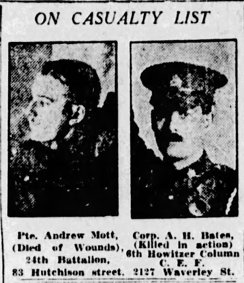 Fils de Charles William et Fannie Shonfeld Mott, de Toronto, Ontario. Né à Winsham, Somerset. Frère de Soldat Hubert Basil Mott, infanterie Canadienne (régiment du Québec), décédé le 24 avril 1915.