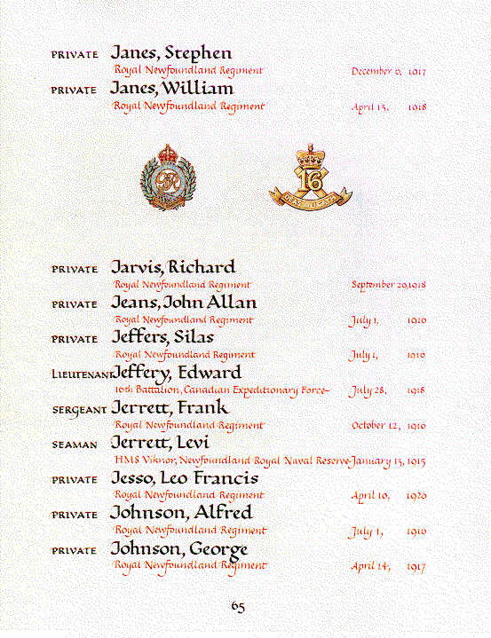 Page 65 du Livre du Souvenir de la Terre-Neuve.