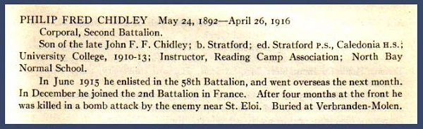 Fils de John F. F. et Isabella Murray Chidley, de Stratford, Ontario.