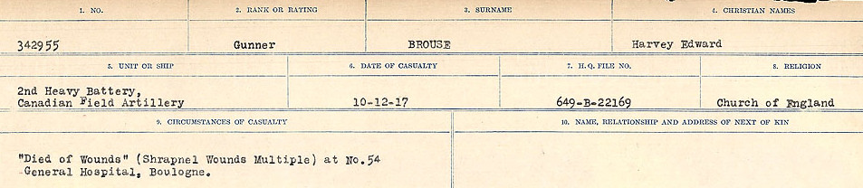Fils de Henry et Ellen Brouse, de Kingston, Ontario.