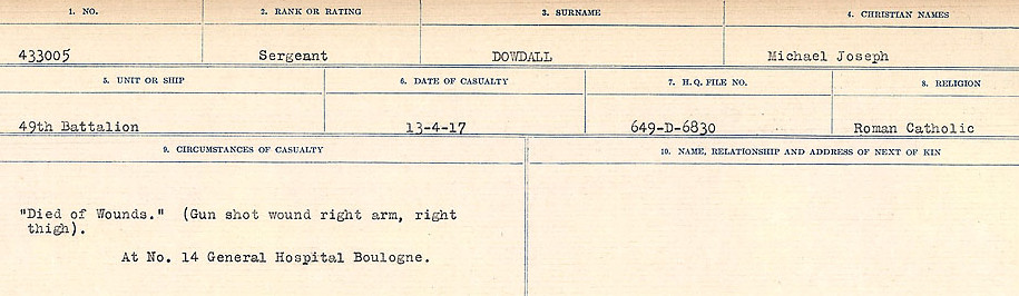 Galerie numérique de Sergent Michael Joseph Dowdall