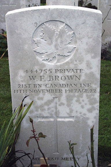 Des fusiliers de Northumberland ont donné le nom de « Tyne Cottages » ou « Tyne Cotts » à un groupe de blockhaus allemands ou casemates situés près du passage à niveau sur la route reliant Passchendaele à Broodseinde. Trois de ces fortins existent toujours dans le cimetière. Le plus gros, qui avait été pris par la troisième division australienne le 4 octobre 1917, a été choisi par le roi George V durant son pèlerinage aux cimetières du front ouest en Belgique et en France en 1922 pour y ériger la Croix du Sacrifice.