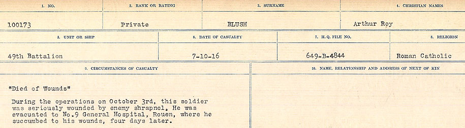 Fils de Charles et Catherine Blush, de Mittineague, Mass., É.-U.