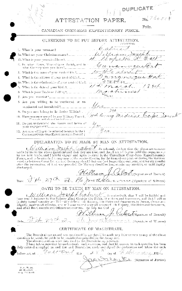 Galerie numérique de Soldat Hugh Calvert