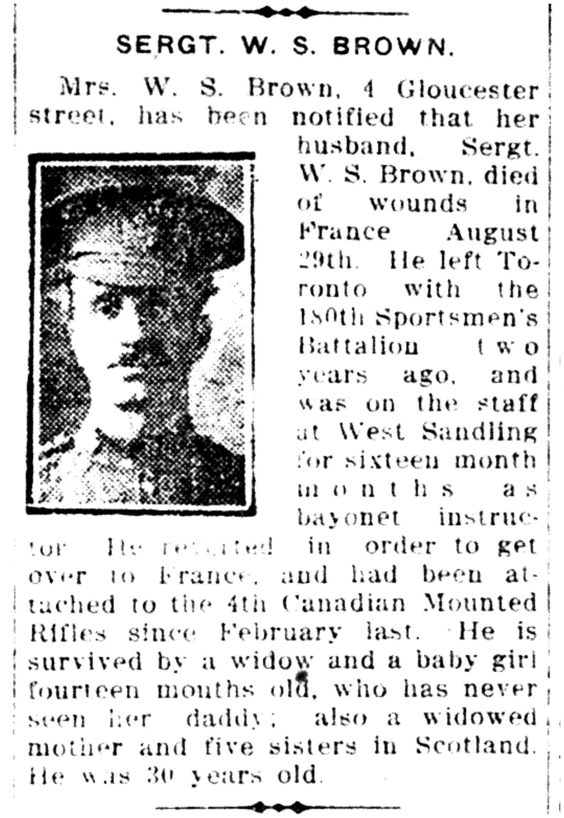 Fils de Thomas et Elizabeth Brown, de 101, Holborn St., Aberdeen, Écosse; époux de Margaret McMahan Brown, de Scarboro Golf et Country Club, Scarboro, Ontario.