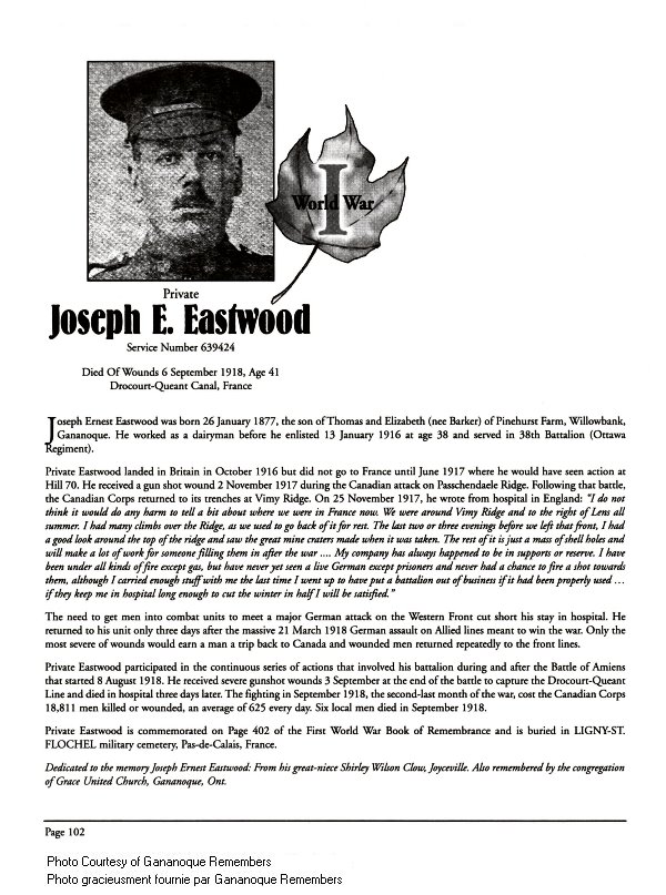 Galerie numérique de Soldat Joseph Ernest Eastwood