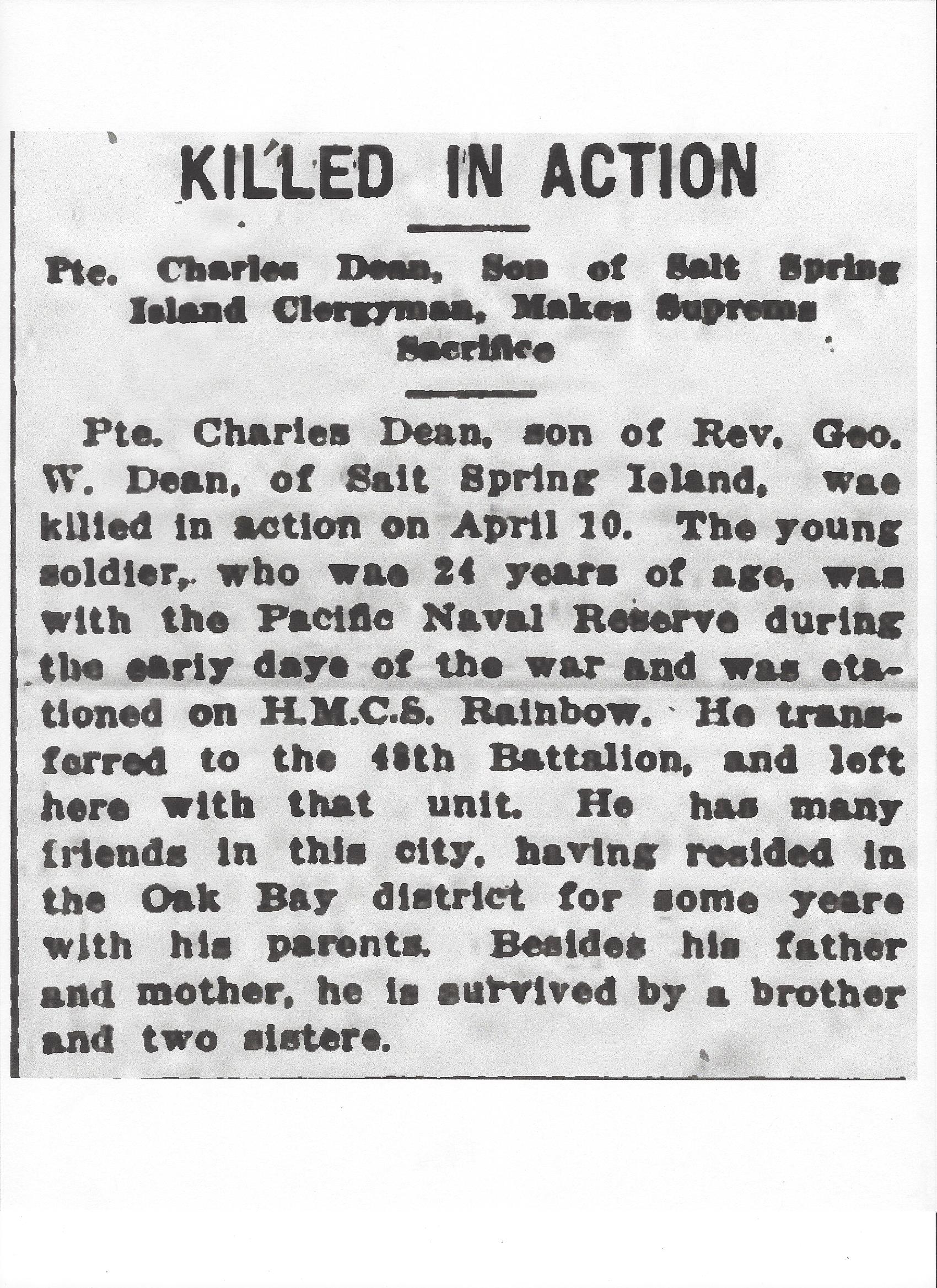 Galerie numérique de Soldat Charles Gordon Dean