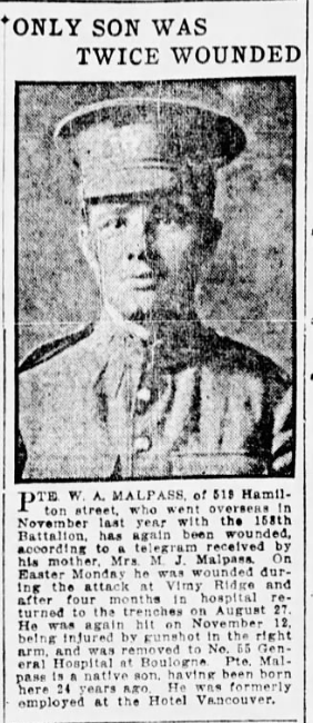 Galerie numérique de Soldat Wilfred Arthur Malpass