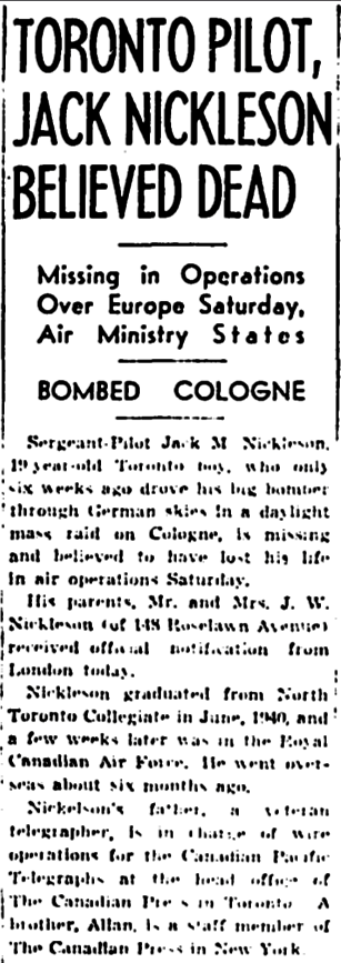 Galerie numérique de Flight Sergeant John Murray Nickleson