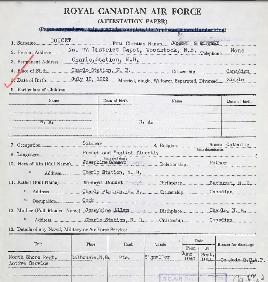 Fils de Michael et Josephine Allan Doucet, de Charlo Station, Nouveau-Brunswick.