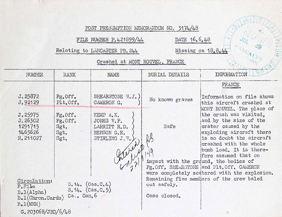 Page 265 du Livre du Souvenir de la Seconde Guerre mondiale.