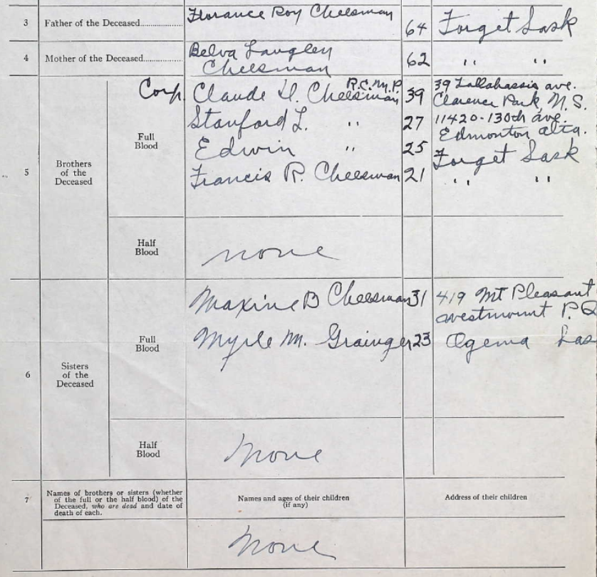 Frère du caporal Claude Durant Cheesman, de la GRC, basé à Shubenacadie, Nouvelle-Écosse.