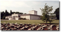« CE CLOÎTRE HONORE LES NOMS DE 20 000 AVIATEURS SANS SÉPULTURE CONNUE QUI SONT MORTS POUR LA LIBERTÉ LORS DES OPÉRATIONS AÉRIENNES AU-DESSUS DES ÎLES BRITANNIQUES, ET DES TERRES ET MERS DU NORD ET DE L'OUEST DE L'EUROPE. »