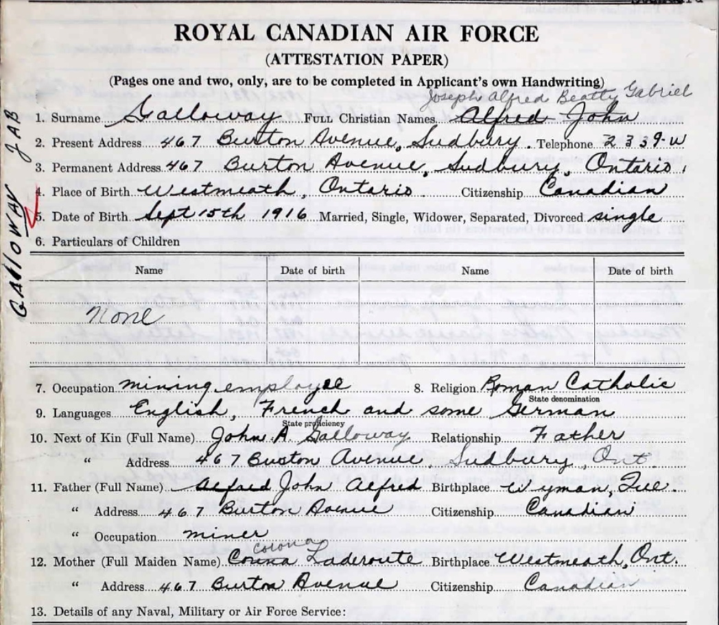 Galerie numérique de Flight Sergeant Joseph Alfred Beatty Gabriel Galloway