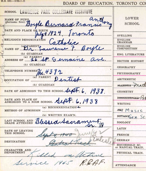 Galerie numérique de Lieutenant d'aviation Bernard Francis Boyle