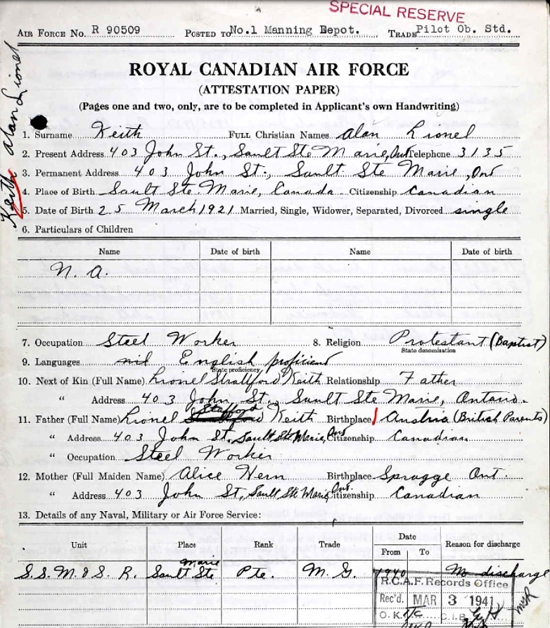 Fils de M. & Mme L. S. Keith, de Sault Ste. Marie, Ontario, Canada.