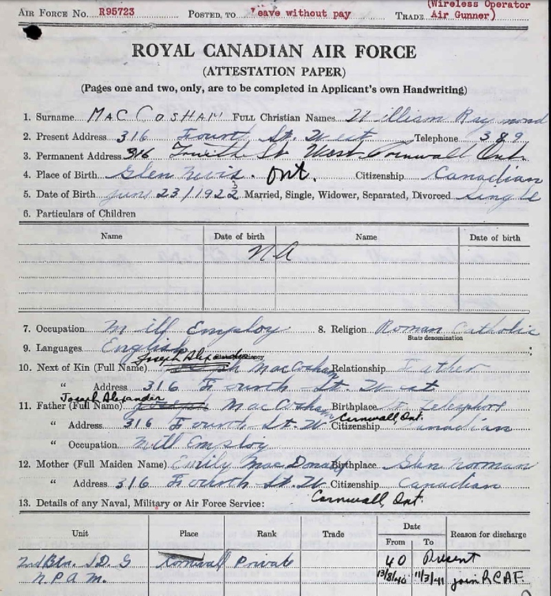 Galerie numérique de Flight Sergeant William Raymond MacCosham
