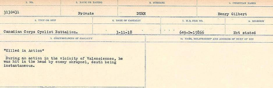 Unité/Régiment : Canadian Corps Cyclist Battalion