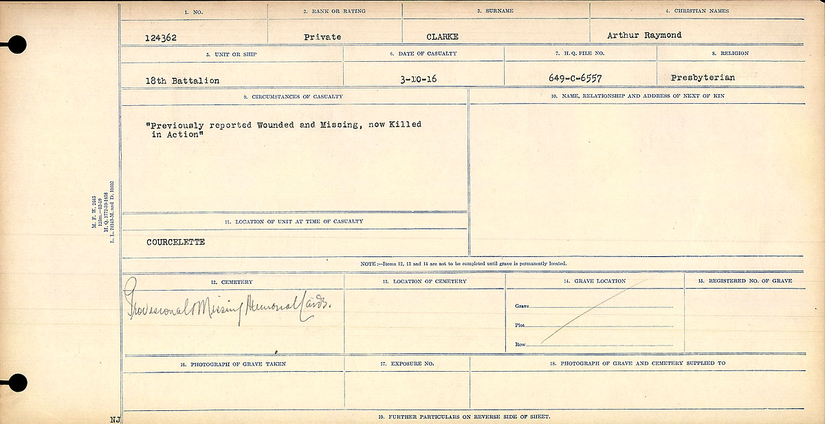 Galerie numérique de Soldat Arthur Raymond Clarke