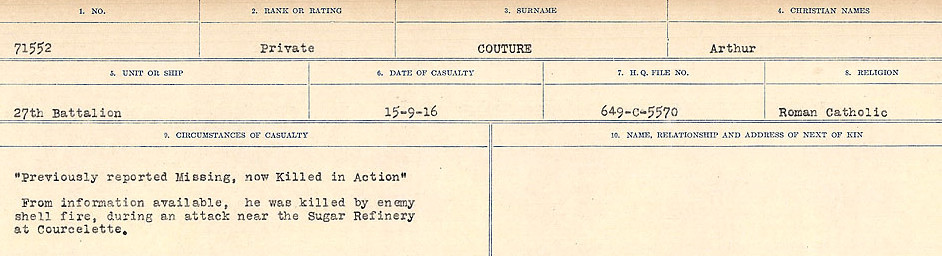 Page 71 du Livre du Souvenir de la Première Guerre mondiale.