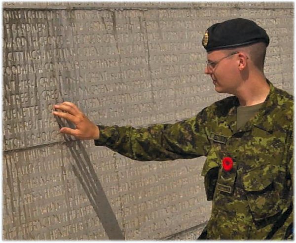 L'hommage le plus impressionnant que le Canada a rendu à ceux de ses citoyens qui ont combattu et donné leur vie au cours de la Première Guerre mondiale, a trouvé son expression concrète dans le Monument Commémoratif du Canada à Vimy, qui surplombe majestueusement la plaine de Douai du sommet de la crête de Vimy, à environ huit kilomètres au nord-est d'Arras. Le Monument représente un hommage à tous ceux qui ont combattu pour leur pays durant ces quatre années de guerre et, en particulier, à ceux qui ont donné leur vie. Sur le socle du Monument, sont gravés dans la pierre, en français et en anglais, les mots suivants :