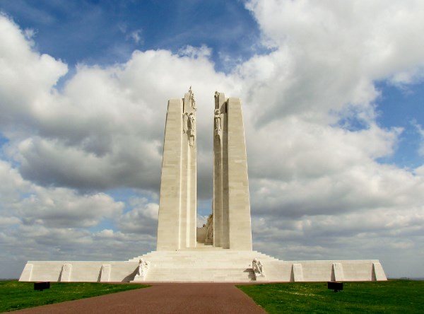 L'hommage le plus impressionnant que le Canada a rendu à ceux de ses citoyens qui ont combattu et donné leur vie au cours de la Première Guerre mondiale, a trouvé son expression concrète dans le Monument Commémoratif du Canada à Vimy, qui surplombe majestueusement la plaine de Douai du sommet de la crête de Vimy, à environ huit kilomètres au nord-est d'Arras. Le Monument représente un hommage à tous ceux qui ont combattu pour leur pays durant ces quatre années de guerre et, en particulier, à ceux qui ont donné leur vie. Sur le socle du Monument, sont gravés dans la pierre, en français et en anglais, les mots suivants :