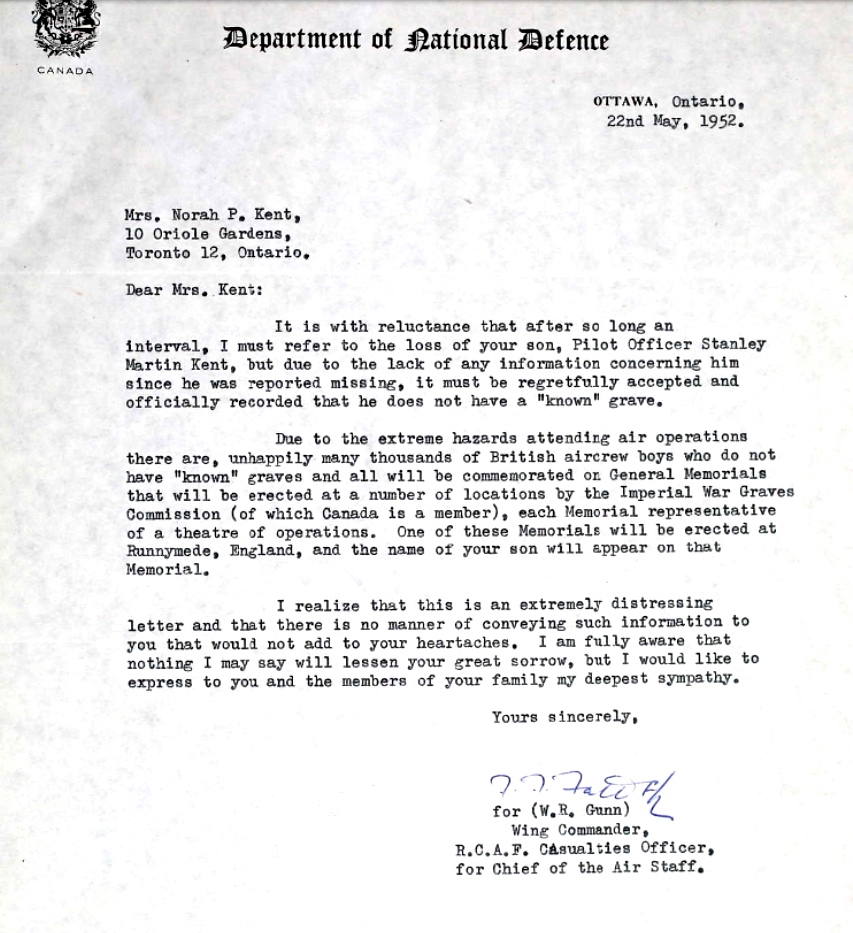 Au cours de la Seconde Guerre mondiale, plus de cent seize mille hommes et femmes des forces aériennes du Commonwealth britannique sont morts au champ d'honneur. Plus de dix-sept mille d'entre eux étaient membres de l'Aviation royale canadienne ou des Canadiens qui servaient dans la Royal Air Force. Presque un tiers des morts n'ont pas de sépulture connue. De ce total, vingt mille quatre cent cinquante sont commémorés par nom au Mémorial de Runnymede situé à Englefield Green, près d'Egham, à trente-deux kilomètres à l'ouest de Londres.