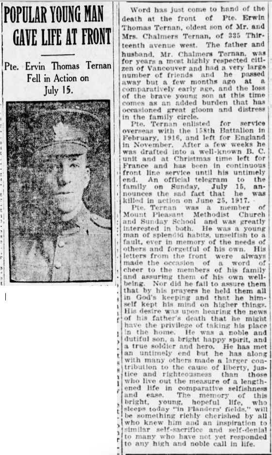 Galerie numérique de Soldat Erwin Thomas Ternan