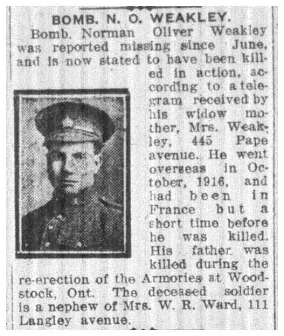 Galerie numérique de Soldat Norman Oliver Weakley