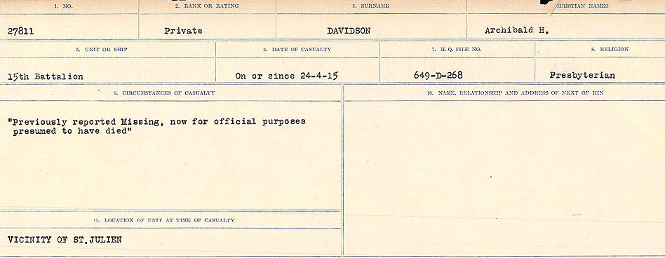 Page 11 du Livre du Souvenir de la Première Guerre mondiale.